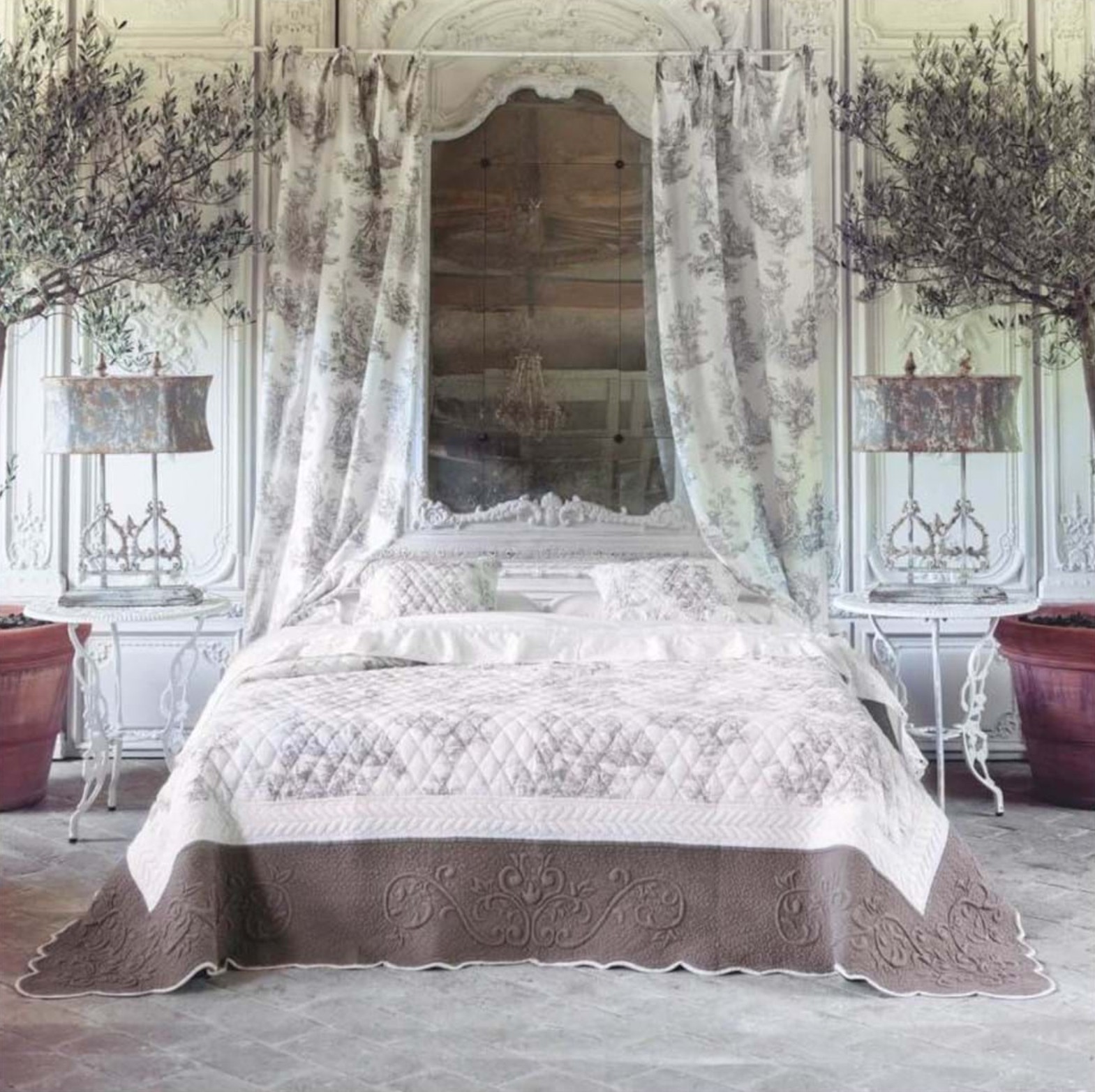 Boutis de lit « toile de Jouy »