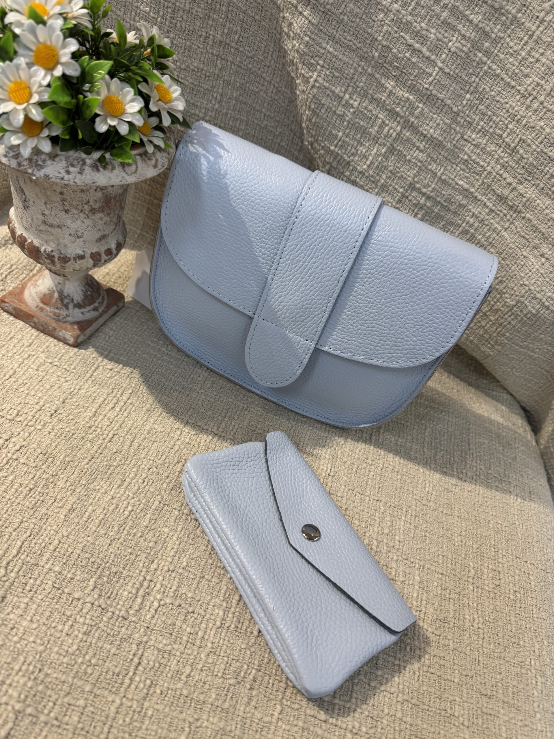 Sac Besace en cuir bleu ciel
